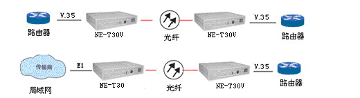 NE-T30V 可以和NE-T30 成对使用,节省一个G.703/V35协议转换器