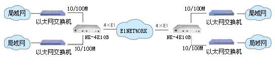 NE-4E10B采用反向复用技术,将多条E1电路捆绑起来用于传输10M/100M的以太网数据,并且允许E1电路之间存在一定的传输时延差。使用NE-4E10B可以充分地利用电信网络中现有的大量E1电路资源来扩展以太网的传输距离和应用范围,是以太网宽带接入一个很好的解决方案。