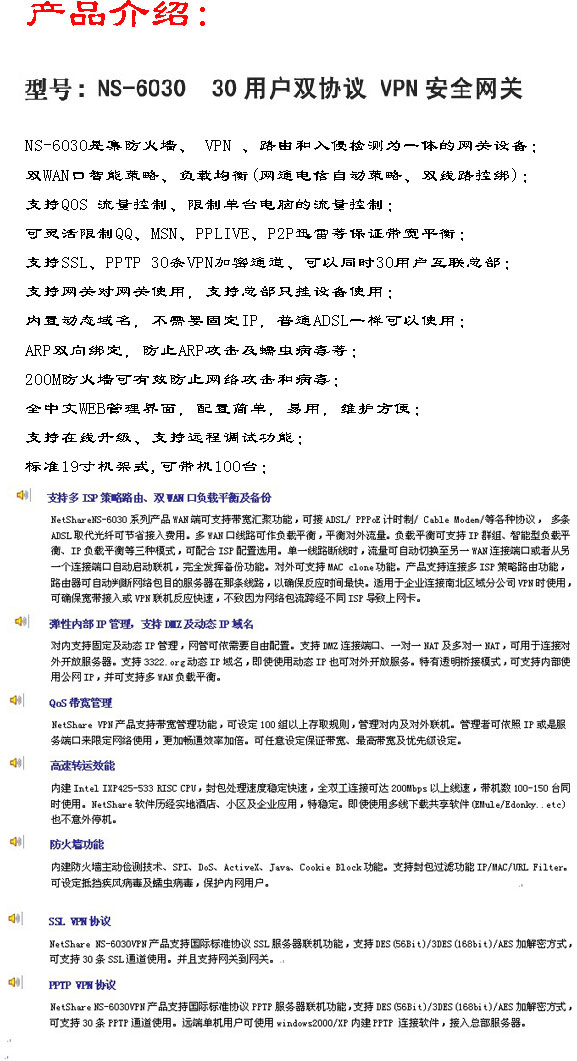 100用户(SSL,PPTP)双协议VPN安全网关