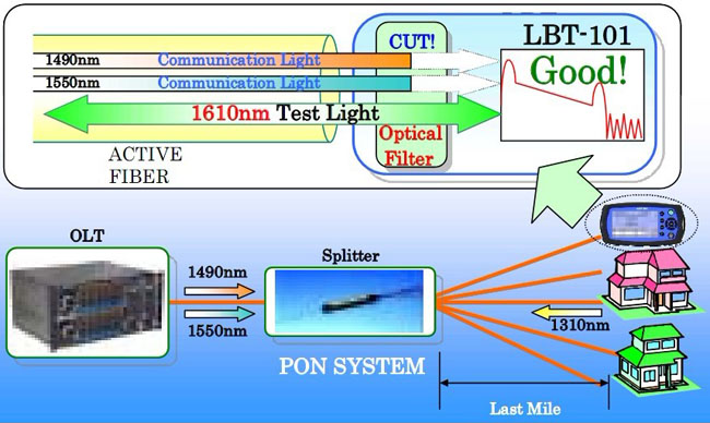 1650nm 遮断不撤去波长选择过滤器,可从室内一侧测试。使用波长1550nm 的CATV等也适用。